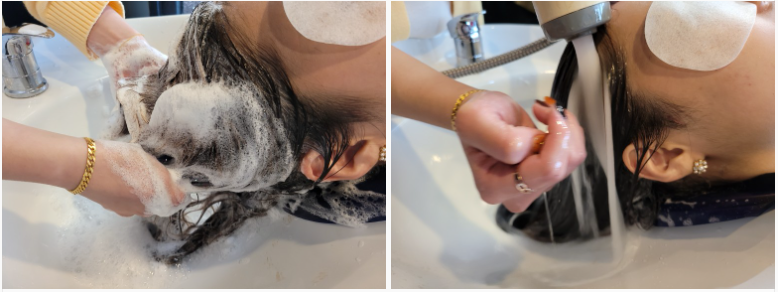 1회 펌핑하여 간단히 씻어 주고, 다시 1~2회 펌핑하여 두피와 모발을 골고루 마사지한 후, 약 3~5분 정도 유지하면, 두피에 시원한 느낌이 듭니다. 이때, 물로 3번 이상 깨끗이 씻어주세요,